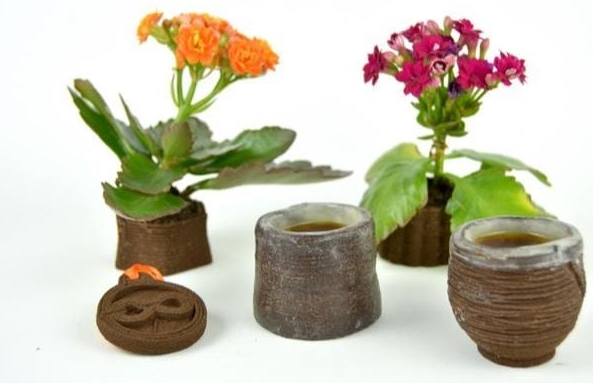3D打印咖啡渣材料是將咖啡渣與黃原膠和纖維素膠(食品中常見的植物增稠劑)等成分混合后而形成的3D 打印的混合物。然后,利用改良過的3D打印機通過層層堆積制作成一個個堅固耐用的作品。
